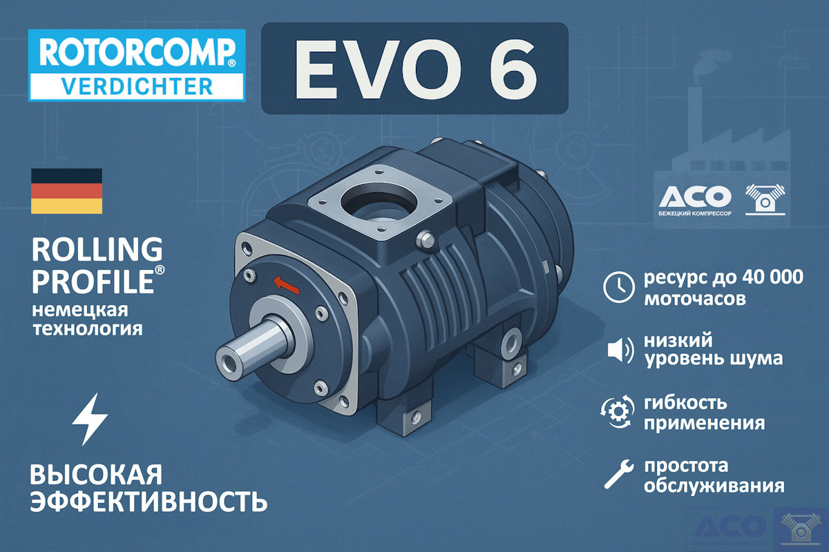 ROTORCOMP EVO 6 — это оптимальное решение для производителей и пользователей винтовых компрессоров, которым важно сочетание экономичности, надёжности и долговечности.
