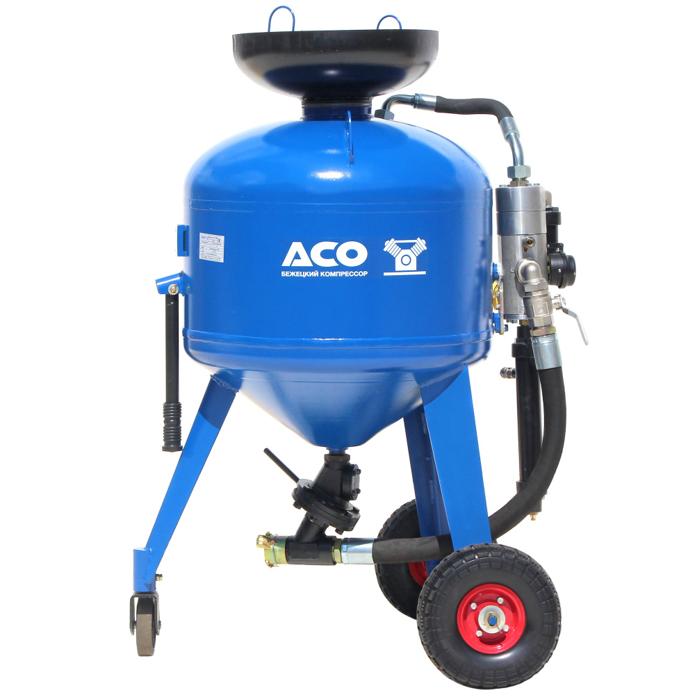Аппарат представляет собой устройство, состоящее из ресивера, образующего рабочую камеру аппарата, загрузочного бункера с сеткой, дозатора абразива, напорного рукава и блока управления.